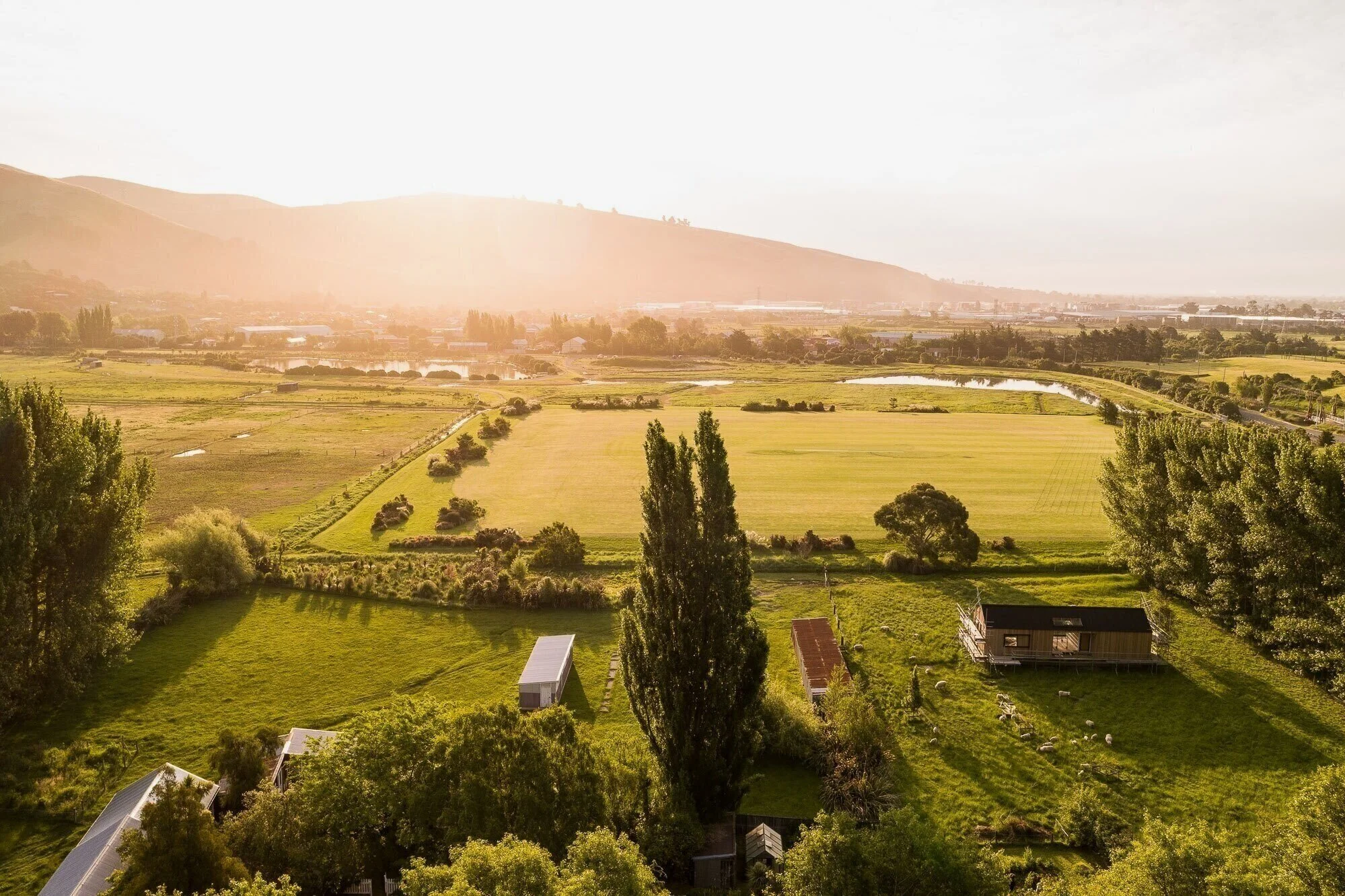 Five Acre Farm, nestled in the heart of Christchurch’s Heathcote Valley, is home to two luxury boutique stays, Te Kirpi Cottage and The Cabin, as well as the sheep, calves and honey bees that roam the five acres of farmland.